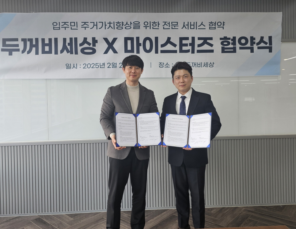 마이스터즈(대표 천홍준)는 아파트 관리 플랫폼 ‘아파트너’를 운영하는 두꺼비세상(대표 유광연)과 전략적 업무 협약(MOU)을 체결했다. 이번 협약은 가구당 평균 63개의 전자제품을 소유하고, 83%가 수리 경험이 있는 가운데 72%가 수리에 어려움을 겪는 현실을 반영한 것이다. 협약을 통해 아파트너 입주민은 새 가전제품 구매 시 ‘원스톱 가전 설치 서비스’와 봄맞이 가전제품 청소 및 케어 서비스를 이용할 수 있다. 마이스터즈는 판교 창업존 입주기업으로 가전제품 점검 및 수리 서비스를 제공하며, 두꺼비세상과의 협력을 통해 입주민들의 생활 편의를 높이고 친환경적인 주거문화를 확산하는 데 기여할 것으로 기대된다.