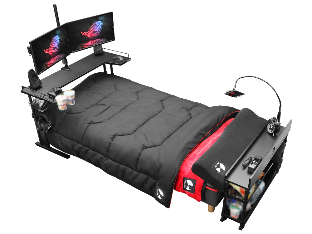 게이밍 가구 브랜드 바우휴테(bauhutte)가 선보인 게임 침대(gaming bed)는 게임 의자를 넘어섰다는 호평을 받고 있다.