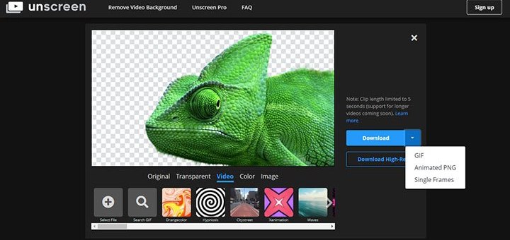 언스크린(Unscreen)은 칼레이도(Kaleido)가 선보인 간단하게 드래그앤드롭으로 동영상 배경을 지울 수 있게 해주는 서비스다. 이 기업은 이전에도 한 번에 이미지 배경을 지울 수 있는 도구(remove.bg)를 선보인 바 있다.