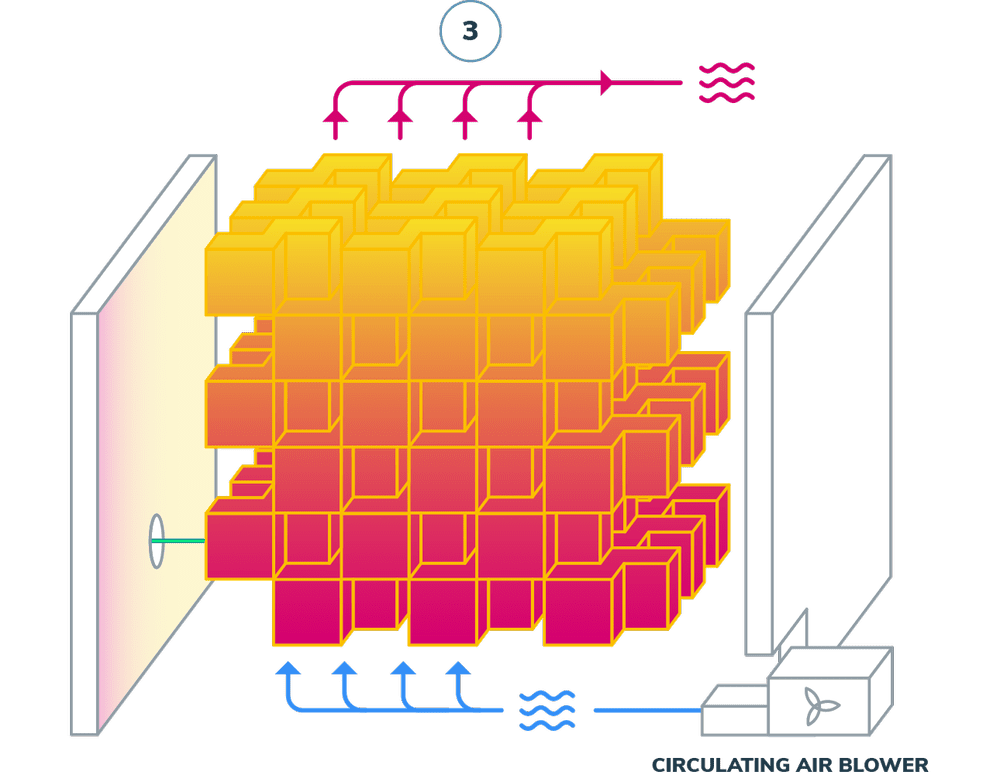 산업용 축전지를 개발하는 론도에너지(Rondo Energy)가 벽돌을 이용한 획기적인 축열 시스템을 개발했다. 기존 화학 전지 20% 비용으로 사용할 수 있는 시스템 구조라고 한다.