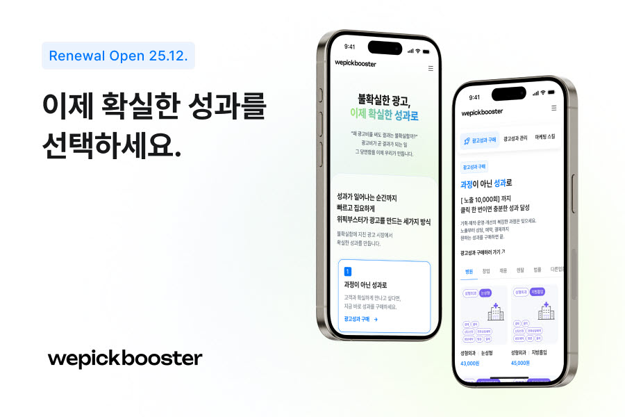 성과구매형 광고 플랫폼 ‘위픽부스터’가 전면 리뉴얼을 통해 새로운 광고 운영 방식을 제시했다. 광고주는 캠페인 기획이나 매체 테스트 없이 노출, 클릭, 상담, 결제 등 238개 성과 중 원하는 항목을 직접 선택해 즉시 구매할 수 있다. 이번 개편은 단순한 UI 개선을 넘어 성과 예측과 소재 제작에 AI 기술을 도입해 안정적인 전환율 확보를 지원한다. 직관적 UI/UX로 초보자도 손쉽게 성과 관리와 리포트 확인이 가능하며, CRM 기반 고객 관리와 자동 최적화 기능까지 제공해 운영 효율을 높였다. 위픽코퍼레이션은 이번 변화를 통해 광고의 불확실성을 제거하고 효율 중심의 구조를 확립했다고 강조했다. 런칭 기념으로 광고비 할인과 무료 혜택을 제공하며, 향후 솔루션 단독 이용까지 확장할 계획이다. 위픽부스터는 단순 집행을 넘어 성과 중심 운영과 실무 역량 강화를 지원하는 통합 플랫폼으로 자리매김하고 있다.