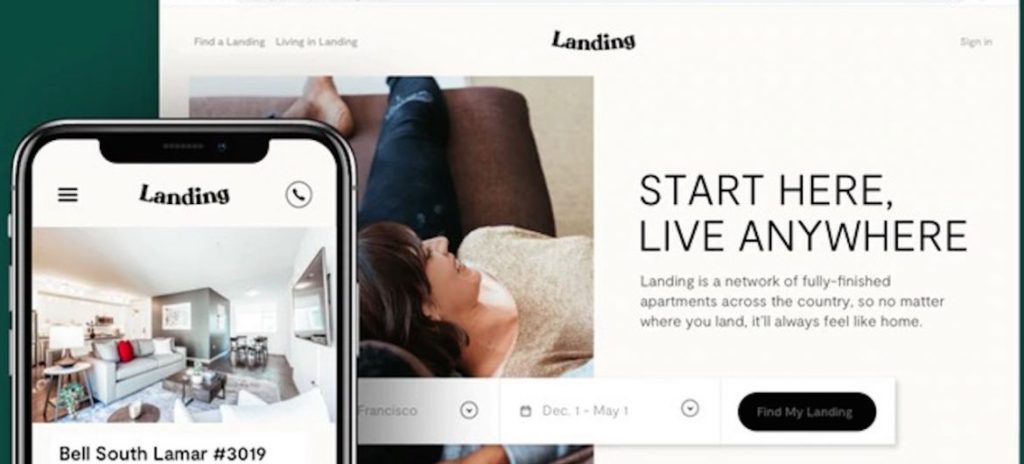 랜딩(Landing)은 장기 계약 없이 유연한 임대 경험을 제공하는 멤버십 서비스다. 2019년 설립된 랜딩은 여행 도중 적절한 아파트를 찾는 데 어려움을 겪은 빌 스미스 대표가 기존 임대시장의 경직성을 없애고 유연한 라이프스타일을 제공하기 위해 했다.