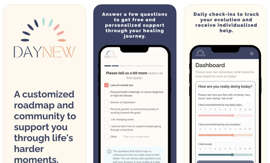 미망인 두 명이 설립한 뉴데이는 슬픔과 애도 과정을 돕는 플랫폼이다. 남편의 갑작스런 죽음을 경험한 이들은 슬픔을 다스릴 수 있는 적절한 장소가 없다는 것을 깨닫고 서비스를 시작했다. 360 힐링이라는 플랫폼을 구축, 이혼 등 고난을 경험했을 때 필요한 자원 등을 제공해 애도하는 과정을 돕는다.