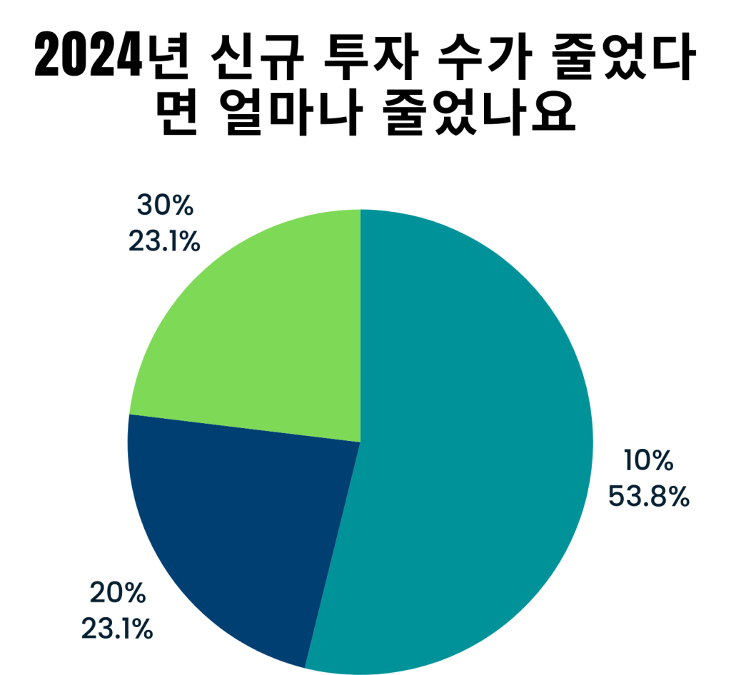 시장이 순탄치 않았다고 응답한 것과는 상반되게 2024년 투자는 평소대로 비슷한 규모로 했다는 응답이 가장 많았는데요. 줄였다고 이들 다수는 10% 축소에 응답했습니다. 쉽지 않은 한해였지만 반도체 등 딥테크 스타트업은 글로벌 진출을 확대한 성과도 있었다는 긍정적 평가와 함께 AI 위주 투자로 버블이 형성돼 AI 워싱 우려를 언급한 투자사도 있었습니다.