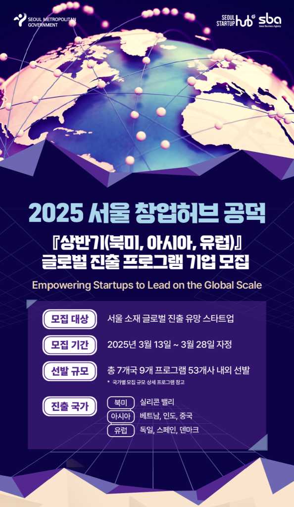 서울경제진흥원은 서울창업허브 공덕과 함께 서울 소재 혁신기업들의 글로벌 시장 진출을 지원하기 위한 상반기 프로그램을 운영한다. 올해는 진출 국가를 13개국으로 확대하고, 130개사를 지원할 예정이다. 기업별 맞춤형 교육과 해외 네트워크 연계, 투자자 IR 등의 현지 지원을 제공하며, AI, 바이오 등 다양한 분야의 스타트업이 참여 가능하다. 프로그램 신청은 3월 28일까지 진행된다.