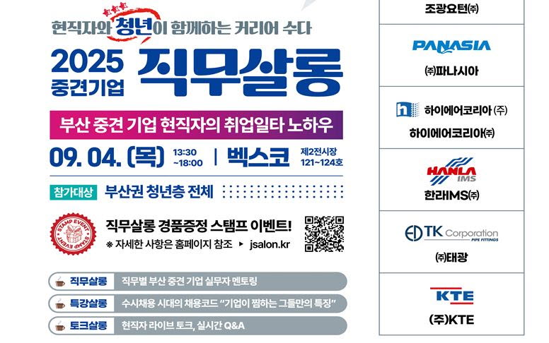 부산시는 9월 4일 벡스코에서 ‘2025 부산 중견기업 직무박람회’를 열고 청년 구직자와 중견기업 현직자 간의 직무 멘토링과 채용상담을 진행했다. 이번 행사는 부산경제진흥원이 주관하고 지역 11개 대학과 10개 중견기업이 참여했으며, 사전 접수에만 200여 명의 청년이 몰리는 등 높은 관심을 받았다. 행사 구성은 직무별 상담을 중심으로 채용 특강, 현직자 토크, 기업별 채용정보 제공 등으로 이뤄졌으며, 인사·총무, 기술연구, 생산관리 등 다양한 분야의 실무자가 직접 참여해 직무 이해도를 높였다. 시는 이번 박람회를 통해 청년들이 지역 기업에 대한 이해를 넓히고 실질적인 취업 기회를 확보할 수 있도록 지원을 강화할 방침이다.