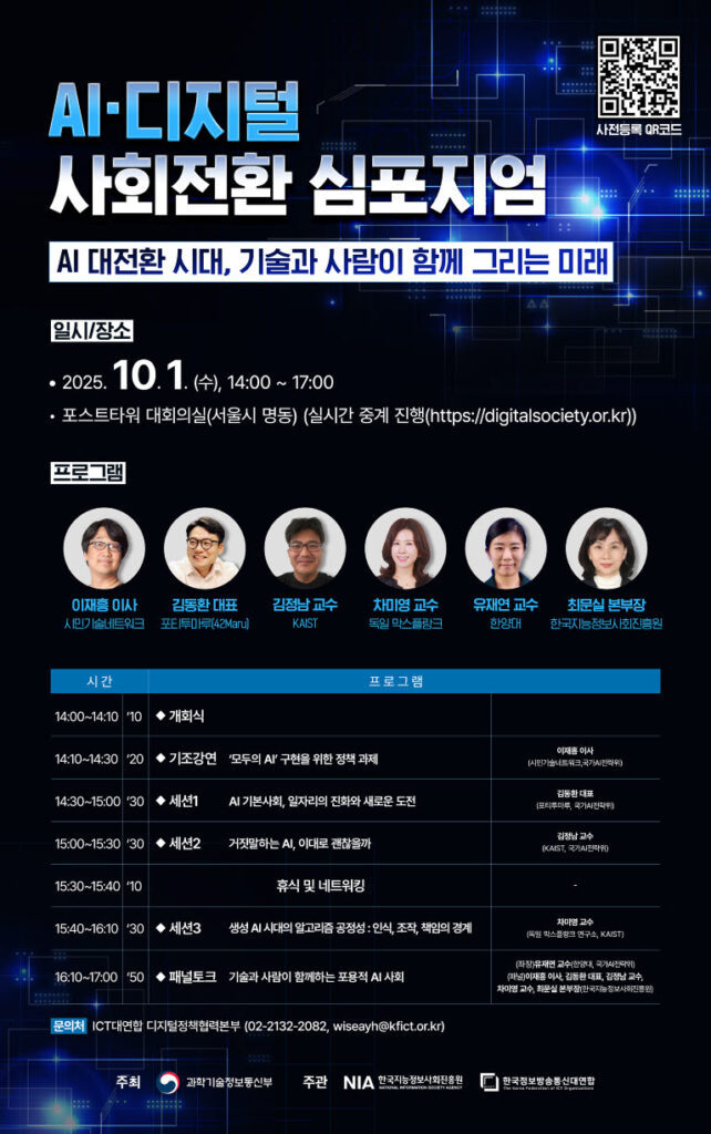 생성형 AI 전문기업 포티투마루가 10월 1일 서울 명동 포스트타워에서 열린 ‘AI·디지털 사회전환 심포지엄’에 참가해 AI 기술과 일자리의 미래에 대한 비전을 제시했다. 이번 행사는 인공지능이 사회 전반에 미치는 영향을 논의하고 사람 중심의 디지털 전환을 모색하는 자리로, 과학기술정보통신부 주최, NIA와 ICT대연합이 공동 주관했다. 포티투마루 김동환 대표는 기조발제를 통해 초거대 언어모델의 산업 활용 사례를 소개하고, AI가 일자리에 미치는 영향을 분석했다. 이어진 패널토크에서는 기술 변화에 따른 직업군의 연착륙과 제도적 대응의 필요성을 강조했다. 포티투마루는 환각 현상을 줄이는 검색증강생성 기술 RAG42, 독해 기술 MRC42, 경량화 모델 LLM42 등을 기반으로 기업 맞춤형 AI 솔루션을 제공하고 있다.