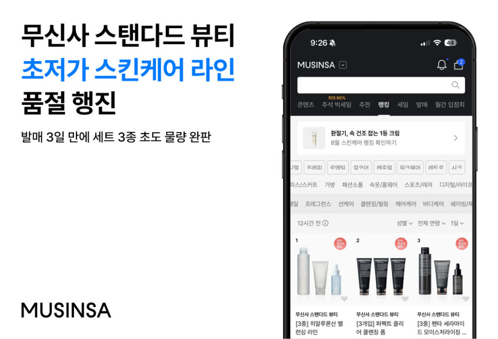 무신사 스탠다드 뷰티, 초저가 스킨케어 라인 품절 행진
