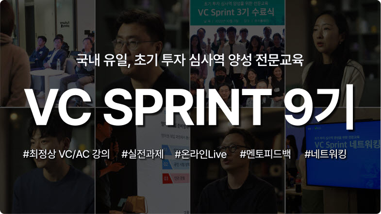스타트업 전문 미디어 이오스튜디오(EO)와 초기투자액셀러레이터협회가 초기 투자 심사역 양성 전문 과정 ‘VC SPRINT’ 9기의 참여자를 모집한다. 이번 기수를 통해 예비 투자 심사역 60명을 배출하는 것이 목표다. 프로그램은 VOD 교육과 특강, 라이브 세션, 실습 과제로 구성되며 11월부터 약 한 달간 운영된다. 업계 최정상 투자 전문가들이 실시간 라이브 세션을 진행하며, 교육 수료자들에게는 협회 304개 회원사와 연계한 채용 및 네트워킹 기회가 제공된다. VC Sprint 9기 모집은 10월 13일부터 11월 2일까지 진행된다.