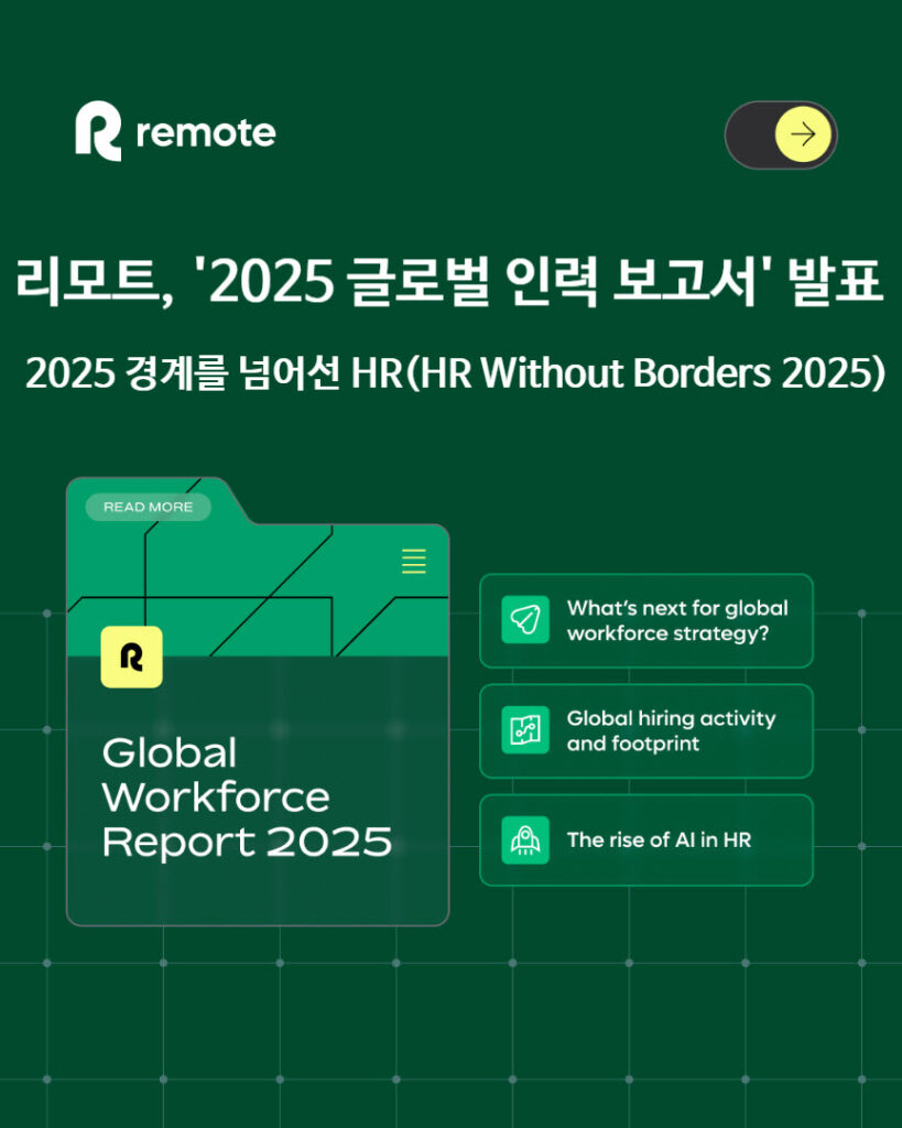 글로벌 HR 플랫폼 리모트가 ‘2025 글로벌 인력 보고서’를 통해 2026년까지 해외 채용이 보편화되고 HR 업무에 AI 활용이 증가할 것이라고 23일 밝혔다. 한국을 포함한 9개국 비즈니스·HR 리더 3,650명을 대상으로 한 조사에서 응답자의 73%는 2026년까지 신규 채용의 절반 이상을 해외에서 수급할 계획이라고 답했다. 또한, 전체 응답자의 75%, 한국 응답자의 89%가 2026년까지 일상적인 HR 업무의 절반 이상을 AI로 처리할 것이라고 예상했다. 보고서는 AI 도입으로 인한 신입 채용 감소, 다양한 HR·AI 툴 복합 사용, 그리고 통합 HRIS의 필요성도 강조했다. 미숙한 AI 활용은 공정성, 효율성, 컴플라이언스 미준수 등의 리스크를 초래할 수 있다고 지적하며, 글로벌 통합 HR 솔루션의 중요성을 역설했다.
