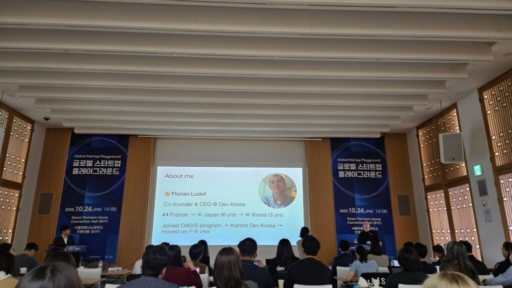 프랑스 스타트업 데브 코리아의 플로리안 루닷 CEO는 영어 사용자를 위한 한국 채용 플랫폼을 운영하며 겪은 경험을 공유했다. 루닷 CEO는 외국인 창업자에게 혜택을 주는 오아시스(OASIS) 프로그램을 통해 한국에 정착했으며 한국이 인재 유치 매력도가 높다고 평가했다. 하지만 한국의 우수한 디지털 시스템이 외국인에게는 오히려 장벽이 될 수 있음을 지적했다. 그는 “한국은 모든 것이 인터넷에 잘 구축되어 있지만 외국인에게는 매일 서류 작업을 해야 하는 수동적인 환경”이라며 “외국인 등록 시 긴 이름이 한국 서식에 입력되지 않는 문제 등 사소하지만 업무 효율을 크게 저해하는 어려움이 있다”고 말했다.