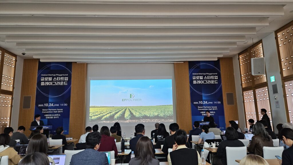 이어진 피칭 세션에서는 100% 천연, 생분해성 고흡수성 폴리머를 제조하는 EF 폴리머(일본)와 한국 잡서치 플랫폼 데브 코리아(프랑스)가 한국 진출 경험을 공유했다.