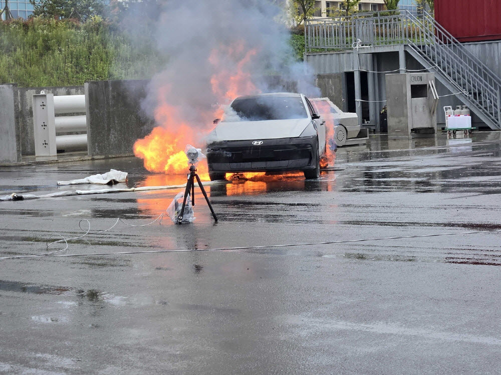 전기차 화재, 배터리팩 직접 관통해 진압…리모빌리티 실차 시험 성공