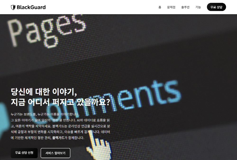 AI 기반 사업개발 스튜디오 테닛이 온라인 평판 관리 서비스 ‘블랙가드(Blackguard)’를 31일 공식 론칭했다. 블랙가드는 AI를 활용하여 온라인상 브랜드 및 셀럽의 평판을 실시간으로 모니터링하고 분석하는 서비스다. 댓글, 게시글, 커뮤니티 등 다양한 플랫폼 데이터를 수집해 악성 게시물, 허위 정보, 여론의 긍정·부정 흐름을 한눈에 보여주며, 단순 모니터링을 넘어 여론의 맥락을 분석하고 위험 신호를 조기에 포착하는 ‘AI 평판 어시스턴트’를 지향한다. 테닛은 AI 기술을 활용해 감정 분석 기반의 댓글 분류 시스템을 구축, 각 댓글의 감정 상태를 자동으로 판별하고 전체 여론의 흐름을 데이터로 시각화한다. 정승헌 테닛 대표는 “블랙가드는 단순한 악플 차단 툴이 아니라, 온라인 평판을 데이터로 관리할 수 있는 새로운 형태의 디지털 평판 관리 서비스”라고 밝혔다. 11월 한 달 동안 가입하는 얼리 액세스 사용자에게는 30% 할인된 금액으로 서비스를 1년 동안 제공하는 프로모션도 진행된다.