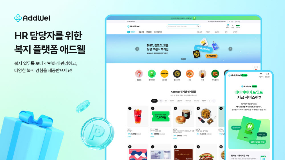 다우기술이 기업 복지 운영의 효율성과 임직원 만족도를 높이는 복지 플랫폼 ‘AddWel(애드웰)’을 선보였다. 인사·총무팀이 복지 업무를 간편하게 관리하고 직원들에게 다양한 복지 경험을 제공할 수 있도록 설계된 서비스다. 애드웰은 생일선물, 명절선물 등 복지형 모바일쿠폰을 손쉽게 구매하고 대량 발송할 수 있도록 지원하며, 예산 관리부터 쿠폰 발송, 정산 관리까지 한 번에 처리해 HR 담당자의 복지 운영 효율을 높인다. 특히 4000개 모바일 쿠폰을 저렴하고 안정적으로 공급하며, 임직원의 선택권을 보장하는 ‘선택형 쿠폰’ 기능을 통해 맞춤형 복지를 실현한다. 모바일 쿠폰 외에 ‘네이버페이 포인트 지급’도 가능해 복지 활용성과 만족도를 높였다. 다우기술은 이번 론칭에 이어 내년 상반기 실물 상품 서비스도 추가 구축할 예정이다.