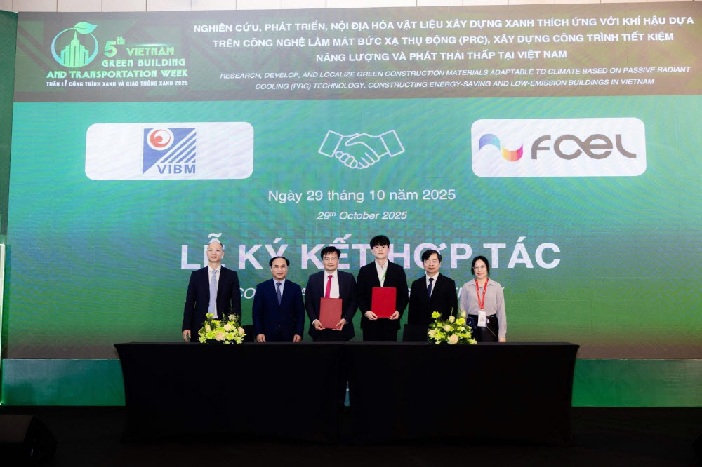 혁신적인 수동복사냉각(PRC) 기술 기업 포엘이 베트남 그린빌딩 시장에 본격 진출한다. 포엘은 베트남 건설부 산하 베트남건축자재연구원(VIBM)과 기후적응형 그린빌딩 자재 공동개발 MOU를 체결하고, 현지 생산과 대규모 실증사업을 단계적으로 추진한다고 6일 발표했다. 양사는 베트남 북부와 남부의 기후 특성에 맞춰 PRC 기반 건축용 자재의 성능을 검증하고, 공공·의료·산업시설 등에 적용할 현지화 솔루션을 개발할 계획이다. VIBM 응우옌 꽝 히엡 원장은 포엘의 기술이 베트남의 ‘그린건축 로드맵’에 완벽히 부합하는 혁신이라며 기대감을 표했다.