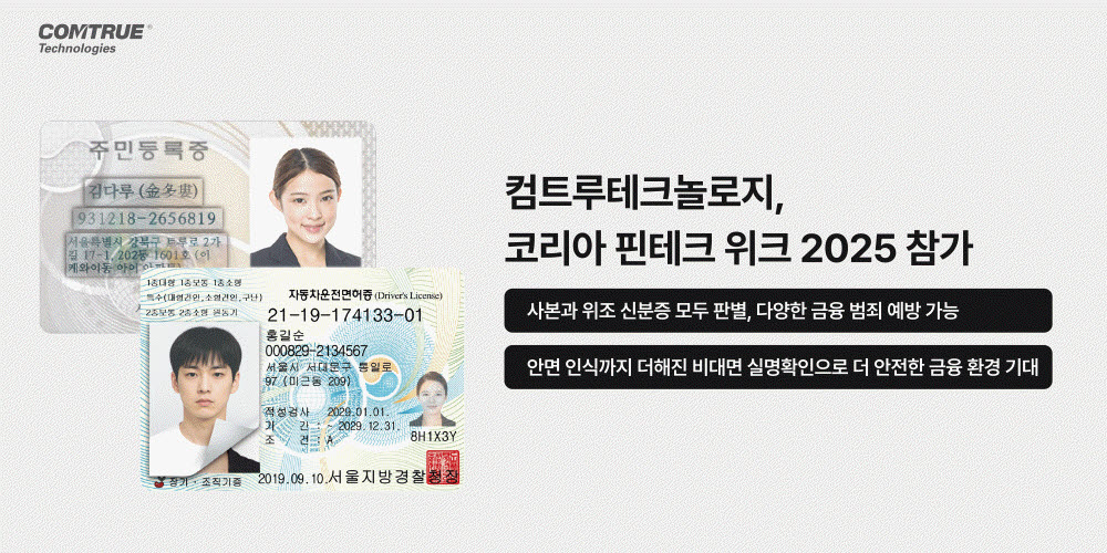 컴트루테크놀로지가 오는 11월 26일부터 28일까지 양재 aT센터에서 열리는 ‘코리아 핀테크 위크 2025’에 참가해 비대면 본인확인 솔루션 ‘eKYC aiDee’를 선보인다. 이번 솔루션은 신분증 사본 판별과 위조 판별 기능을 동시에 제공하며, 안면 라이브니스와 유사도 분석을 통해 더욱 정밀한 본인확인을 구현한다. 최근 금융권에서 신분증을 분실하지 않았음에도 위조된 신분증으로 사기가 발생하는 등 범죄 수법이 고도화되는 상황에서, ‘eKYC aiDee’는 안전한 금융거래 환경을 지원하는 핵심 기술로 주목받고 있다. 솔루션은 복사본 판별과 위조 여부 검증을 별도의 신경망 모듈로 처리해 다양한 범죄 유형에 대응하며, 딥페이크까지 차단할 수 있는 안면 인식 기능을 제공한다. 금융권을 비롯해 여러 산업 분야에서 비대면 본인확인 수요가 확대되는 가운데, 컴트루테크놀로지는 행사 현장에서 데모 시연을 통해 기술력을 직접 선보이고 관람객 참여 이벤트도 진행할 예정이다. 이번 출품은 AI와 정보보안 기술을 결합한 차세대 금융 보안 모델로 평가된다.