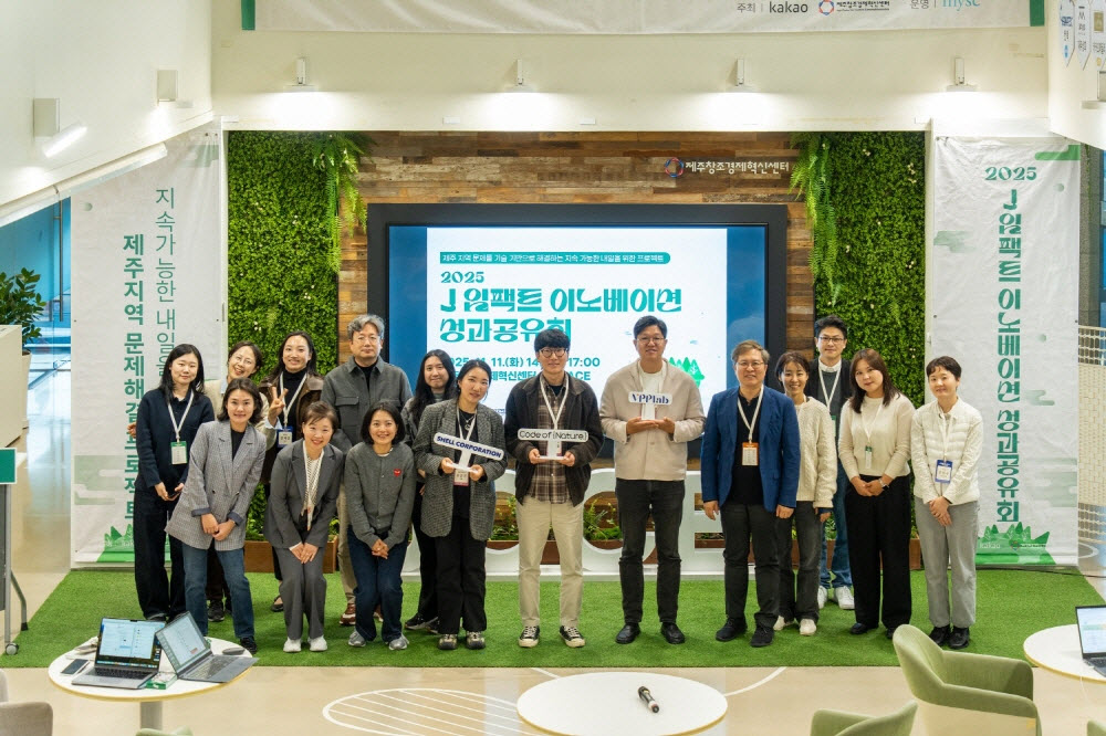 제주창조경제혁신센터와 카카오가 제주 지역 환경문제 해결을 위한 오픈이노베이션 프로그램 ‘2025 J 임팩트 이노베이션’ 성과공유회를 개최했다. 지난 7월부터 5개월간 폐타이벡 새활용, 오름 훼손지 생태 복원, 제주형 RE100 실행 모델 구축 등 기후테크 분야 스타트업 3개 사의 기술 기반 솔루션 실증 결과를 공유했다. 제주센터는 성과공유회를 계기로 후속 투자 연계 등 참여 기업 성장을 위한 지원을 이어갈 방침이다.