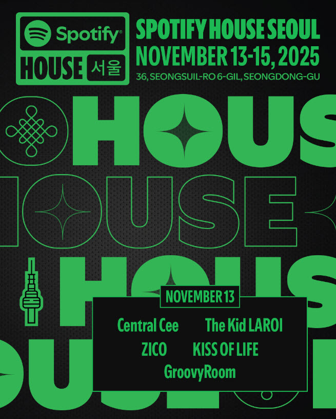 글로벌 오디오 스트리밍 플랫폼 스포티파이가 11월 13일부터 15일까지 서울 성수동 앤더슨씨에서 열리는 ‘스포티파이 하우스 서울’의 추가 아티스트 라인업을 공개했다. 행사 첫날 오프닝 무대에는 글로벌 힙합 스타 센트럴 씨(Central Cee), 아티스트 지코, 그리고 글로벌 리스너들의 주목을 받는 걸그룹 키스 오브 라이프가 새롭게 합류한다. 이들은 그래미상 후보 더 키드 라로이, 그루비룸, 박재범 등 기존 라인업과 함께 사흘간 다채로운 음악 축제를 펼칠 예정이다. 스포티파이는 이번 행사를 통해 라이브 공연과 몰입형 체험 공간 등을 선보이며 팬들에게 특별한 오프라인 경험을 제공할 계획이다.
