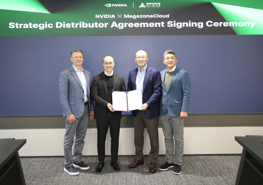 AI·클라우드 선도 기업 메가존클라우드가 글로벌 AI 칩 제조사 엔비디아와 한국 공식 총판 계약을 체결했다. 메가존클라우드는 지난 13일 계약식을 기점으로 엔비디아의 DGX, HGX GPU 서버 및 고성능 네트워크 장비 InfiniBand 등 AI 인프라 핵심 하드웨어를 국내 시장에 공급한다. 특히 단순 제품 유통을 넘어 AI 인프라 설계, 구축, 운영을 전 과정에 걸쳐 지원하는 ‘플랫폼형 총판’ 모델을 도입해 국내 AI 비즈니스의 성장과 생태계 확장을 주도할 방침이다. 양사는 공동 마케팅 활동을 통해 고객 접점을 넓히고 파트너 생태계를 육성하는 데도 협력할 예정이다.