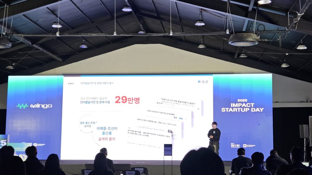 윙스는 사회복지사 출신 대표가 설립한 언어발달치료 서비스 ‘말이랑’을 운영하는 소셜 스타트업으로 코로나19 이후 증가한 아동 언어발달 지연 문제를 해결한다. 진단부터 훈련·관리까지 통합적으로 지원하는 온라인 솔루션을 제공하며, 음성 인식과 맞춤형 훈련 기술을 활용해 보호자와 치료사를 연결한다. 이를 통해 기존 3시간 걸리던 치료 과정을 30% 수준으로 단축하고 비용도 약 4분의 1로 절감했다. 아동 중심에서 시니어·일반인 시장으로 확장할 계획이다.