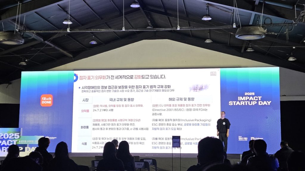 플릭던은 시각장애인을 위한 점자 프린터와 AI 기반 점자 변환 솔루션을 개발한다. 문서나 제품 정보를 자동으로 점자 형태로 변환해 출력할 수 있는 시스템을 제공하며 사람의 수작업에 의존하던 기존 점자 제작 과정을 자동화했다. 공공기관·기업용 API도 제공해 의약품, 식품, 화장품 등 점자 표기 의무화 확대에 대응하고 있다. 현재 국내외 공공시설 보급과 글로벌 시장 진출을 추진 중이며 시각장애인의 정보 접근성과 고용 기회를 함께 확장하는 것을 목표로한다.