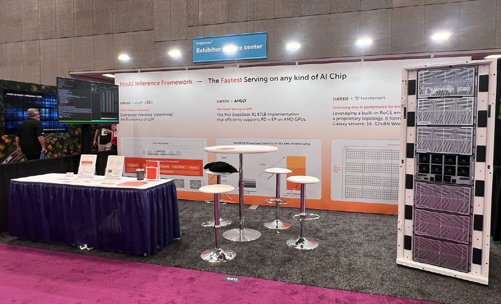AI 인프라 솔루션 기업 모레(MOREH)와 AI 반도체 기업 텐스토렌트(Tenstorrent)가 공동 개발한 AI 데이터센터 솔루션을 ‘슈퍼컴퓨팅 2025(SC25)’에서 최초로 공개했다. 미국 세인트루이스에서 열리는 이번 행사에서 선보인 솔루션은 모레의 AI 플랫폼 ‘MoAI’와 텐스토렌트의 갤럭시 웜홀 서버를 결합한 형태로, 기존 GPU 기반 시스템 대비 확장성과 비용 효율성(TCO 절감)이 뛰어나다. 특히 대부분의 가속기가 추론 전용인 것과 달리, 이 솔루션은 단일 플랫폼에서 추론과 훈련을 모두 지원하는 것이 특징이다. 모레는 텐스토렌트 프로세서까지 지원 범위를 확대하며 엔비디아가 독점하고 있는 글로벌 AI 데이터센터 시장에 본격적으로 도전할 계획이라고 밝혔다. 양사는 벤더 종속 없이 고성능의 AI 인프라를 효율적으로 제공하는 것을 목표로 한다고 강조했다.