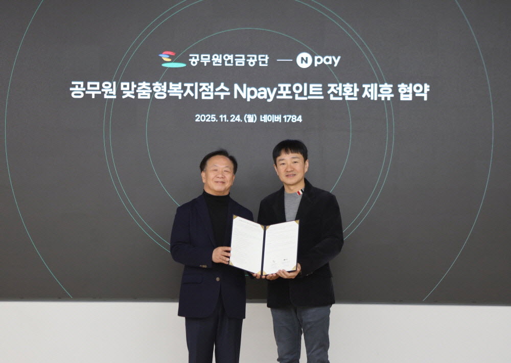 네이버페이가 공무원연금공단과 업무협약을 체결하고 전국 80만 명 공무원이 사용하는 ‘맞춤형복지점수’를 네이버페이 포인트로 전환하는 서비스를 도입한다. 이번 제휴를 통해 공무원들은 2026년부터 복지점수를 별도의 청구 과정 없이 Npay 온·오프라인 결제처에서 편리하게 사용할 수 있게 된다. 이는 공무원 복지 혜택의 활용도를 높이는 데 크게 기여할 전망이다. 한편, 네이버페이는 12월 1일부터 2026년 복지점수 전환을 위한 사전 신청 페이지를 공무원연금공단 맞춤형복지시스템을 통해 오픈할 예정이다.
