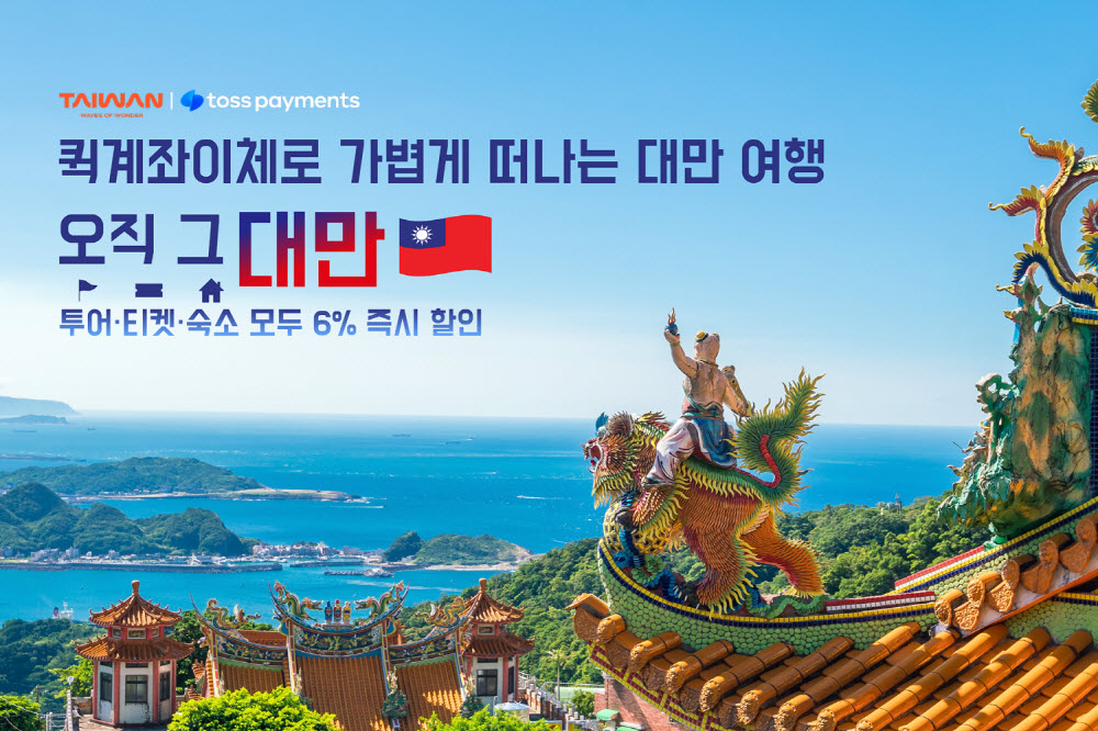 토스페이먼츠는 대만관광청과 손잡고 겨울 시즌 대만 여행객을 위한 특별 프로모션을 진행한다. 오는 12월 31일까지 이어지는 이 행사는 간편결제를 통한 합리적인 여행 기회 확대를 목표로 한다. 여행·숙박 플랫폼 놀과 마이리얼트립에서 토스페이먼츠의 퀵계좌이체로 5만 원 이상 대만 여행 상품을 결제하면 즉시 6% 할인(최대 1만 원) 혜택을 받을 수 있다. 양사는 이번 협업이 겨울철 대만 여행 수요 증진 및 고객의 간편하고 안전한 결제 환경 마련에 기여할 것으로 기대하고 있다.