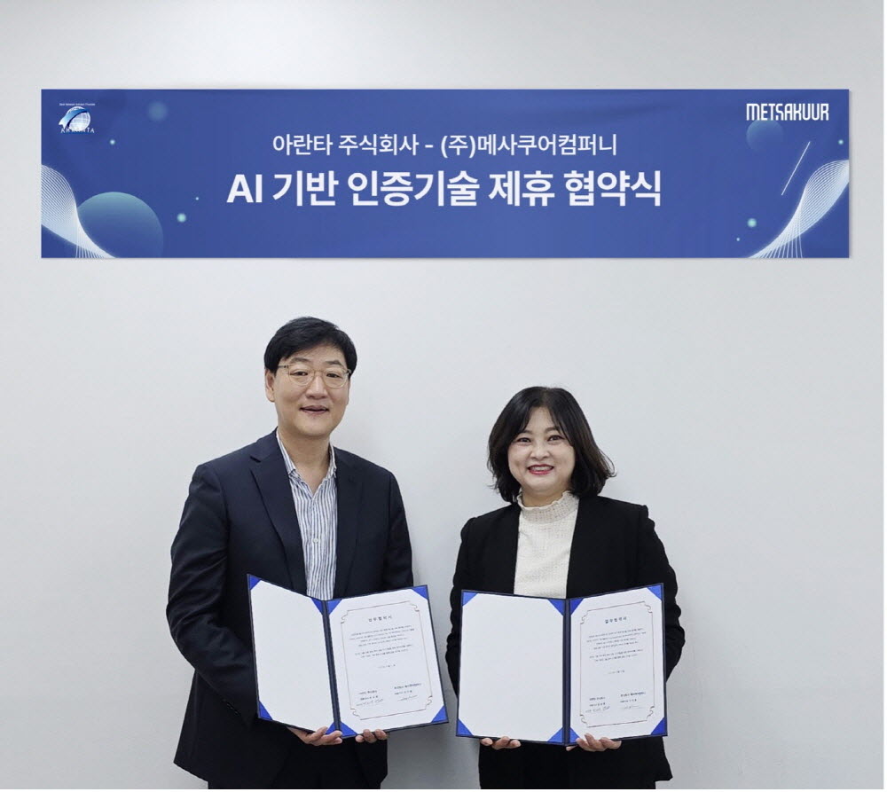 비전 AI 전문 기업 메사쿠어컴퍼니와 원격 솔루션 전문 기업 아란타가 인공지능(AI) 기반 보안 기술 공급을 위한 전략적 업무협약을 체결했다. 양사는 외부 인력의 원격 시스템 접속 과정에서 발생할 수 있는 비인가 접속, 정보 유출, 이상 행위 등 보안 위협을 AI 기술로 탐지하고 차단하는 고도화된 보안 체계를 공동 구축한다. 아란타의 ‘온라인 용역통제 시스템’에 메사쿠어컴퍼니의 얼굴인식 AI 기술을 결합하여 원격 접속자의 신원을 실시간으로 확인하는 것이 핵심이다. 이를 통해 무단 접속 및 정보 유출을 사전에 차단하고, 원격 유지보수 전 과정의 보안 무결성과 위협 대응 속도를 크게 강화할 방침이다. 메사쿠어컴퍼니 이지훈 대표는 AI 보안 기술이 원격 작업 환경의 새로운 표준이 될 것이라 밝혔으며, 아란타 박미연 부사장은 접속 시작부터 종료까지 빈틈없는 보안 환경을 제공할 것이라고 강조했다.
