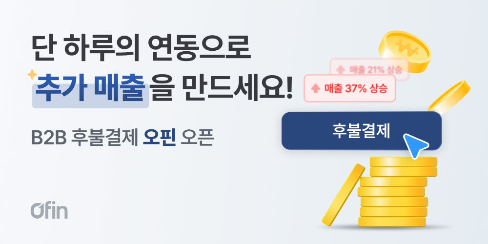 핀테크 기업 올라핀테크가 기업 간 거래(B2B) 후불결제 서비스 ‘오핀(Ofin)’을 26일 정식 출시했다. 오핀은 기업 대상 판매몰에 연동하여 구매 기업에게 후불결제를 제공하는 솔루션이다. 오핀을 이용하면 구매 기업은 상품을 먼저 받은 뒤 약 1\~3개월 후에 대금을 납부하며, 오핀은 판매몰에 상품 대금을 선지급한다. 이는 재고 확보에 자금 부담을 겪는 기업의 구매력을 높여 매출 증대를 돕고, 판매몰에는 즉시 정산을 통한 현금 흐름 개선 효과를 제공한다. 올라핀테크 김상수 대표는 “축적된 핀테크 기술을 기반으로 모든 사업자에게 실질적인 도움이 되는 금융 인프라로 확장할 것”이라고 밝혔다. B2B 후불결제 시장은 B2C 대비 4\~5배 규모로 잠재력이 큰 시장으로 평가된다.