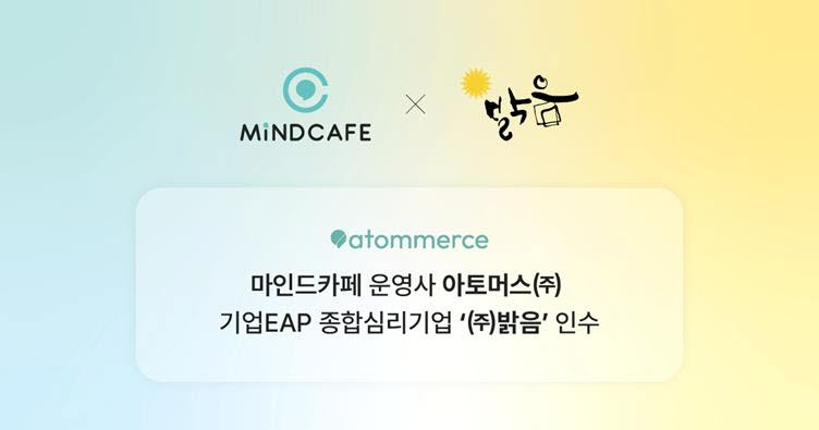 국내 최대 디지털 정신건강 플랫폼 ‘마인드카페’ 운영사 아토머스㈜가 EAP(근로자 지원 프로그램) 및 조직 심리 컨설팅 전문기업 ㈜밝음을 인수하며 디지털 정신건강 시장의 재편을 본격화했다. 이번 인수로 아토머스는 B2C와 B2B를 잇는 국내 최초의 ‘풀스택 심리케어’ 체계를 완성했다. 400만 회원을 보유한 마인드카페의 AI 기반 기술력과 밝음의 오프라인 현장 컨설팅 전문성을 결합해, 심리 진단부터 예방, 관리, 치료, 조직 케어에 이르는 전방위적 솔루션을 제공한다는 방침이다. 아토머스는 이를 통해 데이터 기반의 정밀 심리케어로 시장 패러다임을 전환하고 정신건강 산업의 새로운 표준을 제시할 계획이다.