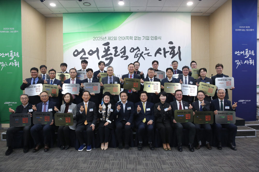 산업정책연구원과 서울과학종합대학원이 공동 주관하는 윤경포럼이 지난 27일 ‘2025년 제2회 언어폭력 없는 기업 인증식’을 성공적으로 개최했다. 민간기업과 공공기관을 포함한 총 37개 기업·기관이 참여해 기업 내 윤리적 소통 문화 확산과 ESG 경영 실천 의지를 재확인했다. 특히 이번 인증식은 신규 인증 기업과 재인증 기업을 구분 시상하며 언어폭력 예방 문화가 장기적인 조직문화로 정착되고 있음을 강조했다. 신규 인증 최우수 기업에는 파인스와 한국환경공단이, 재인증 최우수 기업에는 풀무원과 한국가스기술공사가 선정됐다. 윤경포럼은 언어문화 개선을 ESG 경영의 핵심 요소로 보고, 앞으로도 기업별 진단 및 교육 프로그램 등 실질적인 지원을 확대할 방침이다.