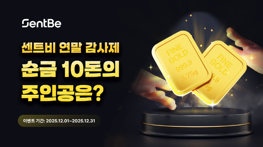 글로벌 외환 토탈 솔루션 기업 센트비(SentBe)가 12월 1일부터 31일까지 연말 감사 프로모션을 진행한다. 한국에서 국내외로 송금하는 고객 누구나 참여 가능하며, 해당 기간 동안 누적 송금액 150만 원 이상을 달성하면 경품 추첨에 자동 응모된다. 센트비는 추첨을 통해 총 10명에게 순금 1돈씩 총 10돈을 경품으로 증정할 계획이다. 이번 프로모션은 고객 성원에 보답하고 연말 송금 비용 부담을 덜어주기 위해 기획됐으며, 센트비 앱을 통한 국내 송금 서비스는 수수료 없이 무제한으로 이용할 수 있다. 센트비 관계자는 “앞으로도 빠르고 간편하며 안전한 국내외 송금 환경과 차별화된 고객 경험 및 혜택을 확대해 나갈 것”이라고 밝혔다.