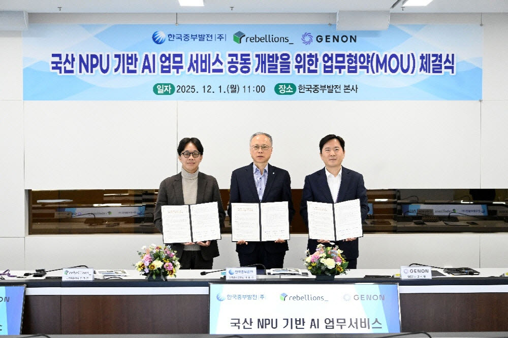 생성형 AI 솔루션 기업 제논은 한국중부발전, AI 반도체 스타트업 리벨리온과 ‘국산 NPU 기반 AI 업무 서비스 공동 개발’을 위한 3자 업무협약(MOU)을 체결했다고 2일 밝혔다. 이번 협력은 국내 AI 솔루션 기업, 공공기관, AI 반도체 스타트업이 함께 국산 인공지능 반도체(NPU)를 기반으로 발전소 업무 특화 AI 서비스인 ‘하이코미(Hi-Komi) AI 서비스’를 고도화하는 데 중점을 둔다. 제논은 리벨리온의 ‘ATOM-Max’ NPU에 자사의 생성형 AI 플랫폼 ‘제노스(GenOS)’를 적용하고 실시간 데이터 분석 및 AI 추론 자동화 시스템을 개발할 계획이다. 공공과 민간의 협력을 통해 AI 상생 및 자립 생태계를 조성하고, 국산 AI 반도체 기술의 실증 모델을 확보하는 중요한 의미를 지닌다. 프로젝트는 12월부터 단계적으로 추진된다.