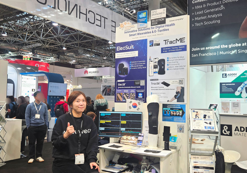 스포츠테크 및 스마트웨어 전문기업 웨이브컴퍼니가 세계 최대 의료기기 박람회 중 하나인 ‘MEDICA 2025’에 2년 연속 참가해 독자 개발한 전도성 실리콘 전극 소재 ‘일렉실(Elecsil)’의 기술력을 선보였다. 일렉실은 젤이 필요 없는 건식 전극임에도 표준 습식 전극과 동등한 수준의 초저 임피던스를 구현하는 혁신 기술이다. 이는 기존 건식 전극의 고질적인 문제였던 신호 품질 저하를 원천적으로 해결하며, ECG(심전도), EMG(근전도) 등 고감도 생체 신호 측정의 정확성을 획기적으로 향상시켰다. 웨어러블 기기 및 의료용 디바이스 적용 가능성을 인정받은 웨이브컴퍼니는 이번 참가를 통해 유럽 의료 및 헬스케어 분야의 주요 파트너들과 관계를 구축하고 소재 B2B 사업 확대를 위한 발판을 마련했다고 밝혔다.