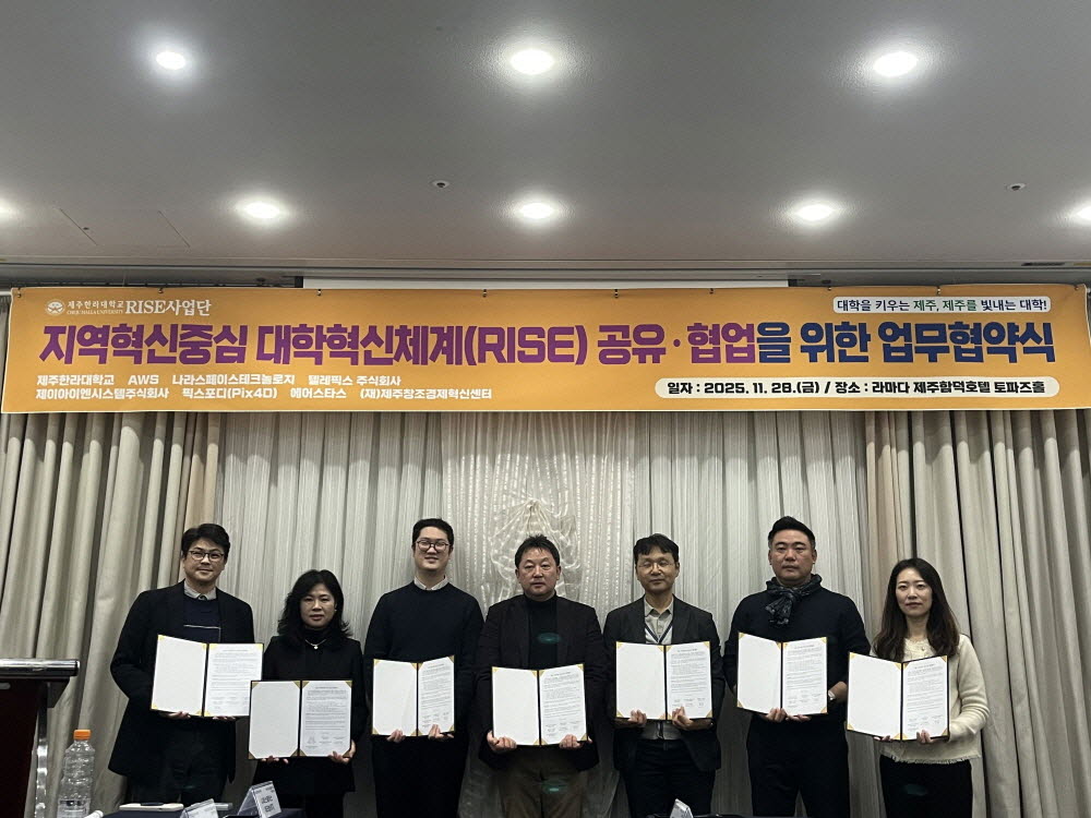 제주창조경제혁신센터(제주센터)와 제주한라대학교 RISE 사업단이 지난 28일 ‘제주 우주·항공 데이터 컨소시엄’ 업무협약을 체결하고 제주 우주데이터 생태계 조성에 나섰다. 이번 협약에는 나라스페이스, 텔레픽스 등 총 7개 기관이 참여했으며, 제주 AX위원회의 후속 협력으로 AI·데이터 기반 신산업 연계를 추진한다. 컨소시엄은 제주 지역 우주·항공 데이터 수집·관리·공유를 위한 통합 플랫폼 구축, 산학연 연계 혁신 생태계 조성, 전문 인재 양성 교육 프로그램 운영 등을 공동 추진한다. 또한, 아마존 웹서비스(AWS)와의 협력 의향을 공식화하며 글로벌 우주·AI 교육 및 연구 프로그램 확대를 계획 중이다. 이는 대학과 기업, 지원기관이 공동 참여하는 민간 주도 우주·항공 신산업 생태계 확장의 발판이 될 것으로 기대된다.