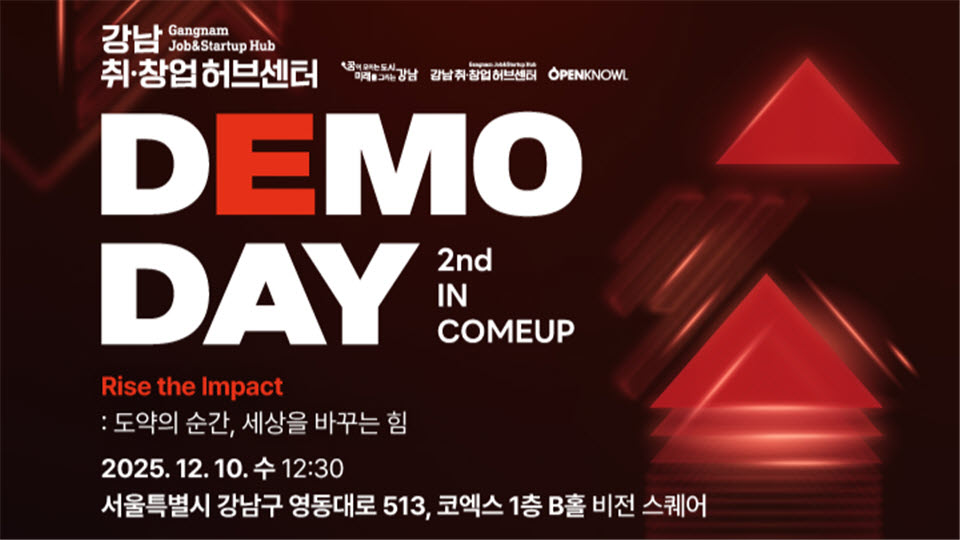 강남 취창업허브센터가 주관하는 데모데이가 글로벌 스타트업 페스티벌인 COMEUP 2025와 연계하여 진행된다. 이 행사는 유망 스타트업들이 글로벌 무대에서 도약할 수 있는 기회를 제공하며 참가자는 비즈니스 확장 및 투자 유치 활동을 전개할 것으로 예상된다.