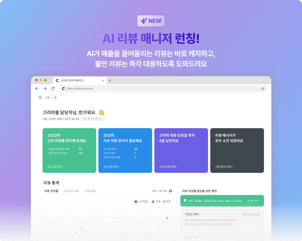 크리마, AI 리뷰 매니저 출시… 매출 기여 리뷰 자동 선별