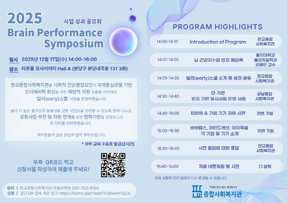 판교종합사회복지관·비바랩스, ‘2025 Brain Performance Symposium’ 개최