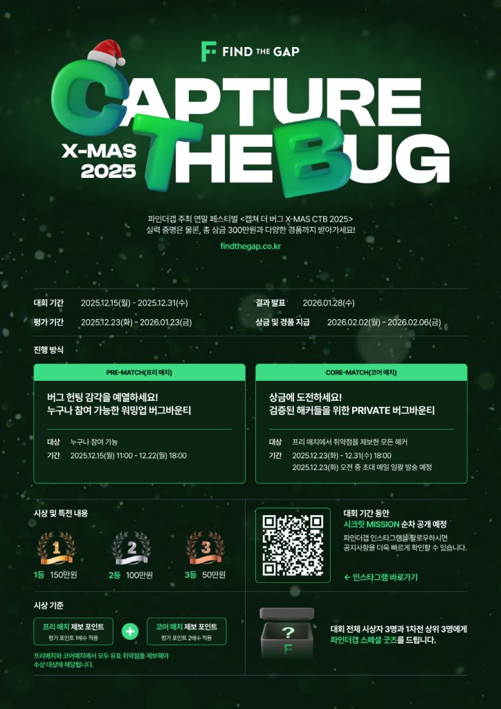 파인더갭, 연말 버그바운티 ‘캡처 더 버그 X-MAS 2025′ 개최