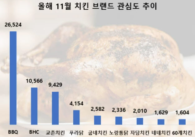 황금올리브 잇단 추천, ‘BBQ’ 11월 소비자 관심도 1위