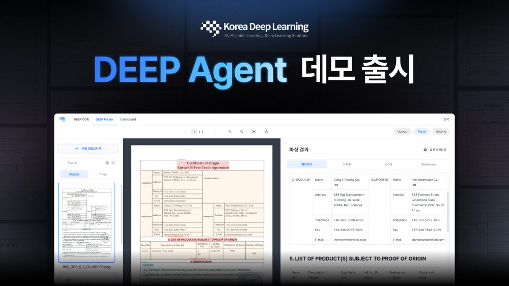 문서 AI 전문기업 한국딥러닝이 핵심 솔루션인 딥 에이전트(DEEP Agent)를 직접 체험할 수 있는 데모 플랫폼 ‘딥 에이전트 랩(DEEP Agent Lab)’을 16일 정식 출시했다. 딥 에이전트는 딥 OCR과 딥 파서로 구성되어 있으며, 사용자는 딥 에이전트 랩에서 문서를 업로드해 두 기능의 처리 과정을 각각 개별적으로 검증할 수 있다. 이는 기업들이 LLM이나 RAG(검색증강생성) 시스템 도입 전에 문서 처리 품질을 사전에 확인하도록 돕는 환경을 제공한다. 한국딥러닝은 금융, 공공, 제조, 물류 등 주요 산업별 특화 문서 AI 패키지를 함께 공개하며 문서 자동화 도입 기간을 단축할 방침이라고 전했다.