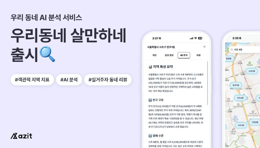 아콘랩스가 운영하는 라이프스타일 플랫폼 ‘아지트’가 인공지능을 활용한 부동산 정보 서비스 ‘우리동네 살만하네’를 정식 선보였다. 이 서비스는 지역별 평균 연령, 소득 수준, 치안·상권 지수 등 핵심 데이터를 기반으로 생활 여건을 시각화해 제공하며, 실제 거주자의 리뷰까지 담아 객관성과 현장감을 동시에 확보했다. 사용자는 지도와 차트를 통해 관심 지역의 특성을 직관적으로 확인할 수 있고, 여러 지역을 나란히 비교해 생활 적합성을 판단할 수 있다. 이는 복잡한 통계를 단순화해 누구나 쉽게 이해할 수 있도록 설계된 것이 특징이다. 개인의 이사 결정뿐 아니라 상권 분석이나 입지 검토가 필요한 사업자에게도 유용한 도구로 자리매김할 전망이다. 이번 출시는 아지트가 4분기 핵심 과제로 제시한 AI 기반 프롭테크 플랫폼 구축을 실현한 것으로, 앞서 공개한 다양한 자체 서비스와 함께 생태계 확장을 가속화하고 있다. 또한 블록체인 기반 리워드 구조를 정립하며 기존 주거 중심에서 AI·라이프스타일 영역으로 범위를 넓히는 전략을 강화했다. 박성민 대표는 이번 서비스가 사용자 의사결정에 실질적인 도움을 주는 플랫폼으로 발전할 것이라고 강조했다.