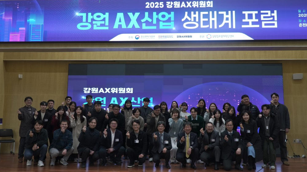 (재)강원창조경제혁신센터(강원혁신센터)는 17일 춘천ICT벤처센터에서 강원 AX 산업 생태계 포럼을 성공적으로 개최했다. 강원 미래산업과 AI를 결합한 협업 방안을 모색하고자 마련된 이번 포럼에는 강원중소벤처기업청, 강원특별자치도, 창업기업 등 50여 명이 참석해 AX 산업 활성화에 대한 높은 관심을 보였다. 1부에서는 춘천바이오산업의 AX 추진 방향, AI 기반 R\&D 기술 및 실증 사례 발표 등 강원 지역 AI 전환 현황과 발전 방향을 주제로 한 강연이 이어졌다. 2부 패널토론에서는 ‘2026년 강원지역 AI산업 발전을 위한 협력 방안’을 논의하며 정부 지원 방향, 기관 간 협력 체계, 실증 환경 구축 등 핵심 전략을 심도 있게 다뤘다. 참석자들은 지역 특화산업과 AX 결합의 중요성, AI 기반 R\&D 역량 강화, 실증 생태계 조성을 주요 과제로 제시하고, 강원지역이 AI 융합 산업 생태계를 선도할 수 있도록 지속적인 협력 네트워크를 이어가기로 뜻을 모았다. 박순홍 강원지방중소벤처기업청장은 지역 기업들이 AI를 실제 사업과 수익으로 연결할 수 있도록 정책적 지원을 아끼지 않겠다고 강조했다.