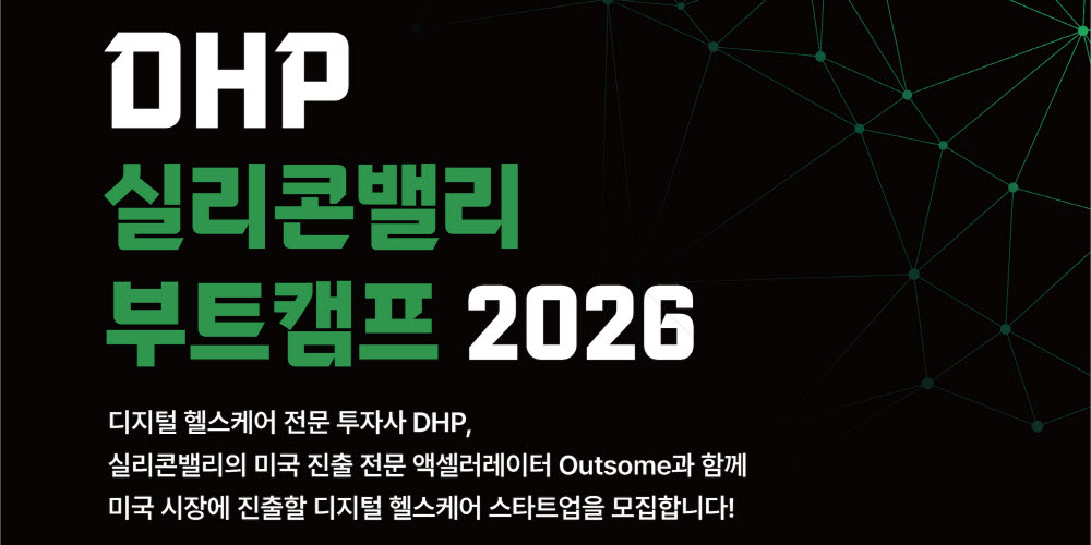 디지털 헬스케어 스타트업 투자사 DHP(대표 최윤섭)가 ‘DHP 실리콘밸리 부트캠프 2026’에 참여할 유망 기업을 모집한다. 서울바이오허브의 글로벌 진출 성장 가속 프로그램 일환으로 진행되는 이번 부트캠프는 선발 기업에게 2026년 1월부터 3월까지 집중 액셀러레이팅을 제공하며, 특히 2월에는 미국 실리콘밸리 현지에서 2주간 합숙하며 고강도 과정을 거친다. 참가 기업은 현지 VC 라운드 테이블, 창업자 네트워킹 등을 통해 미국 사업 진출 및 투자 유치 기회를 확보하게 된다. DHP는 참가팀에게 숙박, 교통, 식사 등 실리콘밸리 현지 체류 비용 일체를 지원하며, 프로그램 참여 기업 중 2개 이상에 직접 투자할 계획이다.