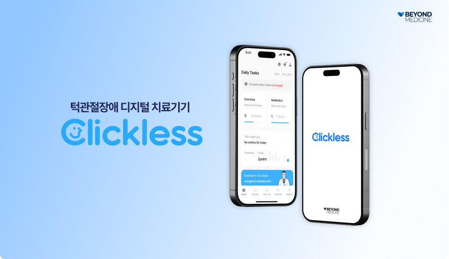 비욘드메디슨이 개발한 턱관절장애 디지털치료제 ‘클릭리스’가 식품의약품안전처로부터 디지털의료기기 2등급 허가를 받았다. 턱관절장애 치료 목적의 디지털 의료기기가 국내에서 허가된 것은 이번이 처음이며, 전 세계적으로도 정식 허가를 받은 사례는 클릭리스가 유일하다. 기존 치료가 물리·약물치료 중심이라 행동 요인을 충분히 다루지 못해 재발률이 높았던 한계를 보완하기 위해 개발된 클릭리스는 인지행동치료 기반 행동 교정, 명상 이완요법, 저작근 재활운동, 데이터 기반 모니터링을 결합한 6주 프로그램으로 구성된다. 환자는 스마트폰을 통해 생활 습관을 교정할 수 있고, 의료진은 전용 대시보드로 치료 데이터를 확인해 맞춤형 계획을 세울 수 있다. 한림대학교병원에서 진행된 임상에서는 96% 이상에서 통증이 평균 3배 감소하는 효과가 확인됐으며, 연구 결과는 국제 학술지 JMIR에 게재됐다. 비욘드메디슨은 올해 다수의 창업·기술 지원사업에 선정되고 전략적 투자를 유치하며 기술력을 인정받았으며, 2026년 3월부터 국내 의료기관을 중심으로 제품 보급을 시작하고 해외 시장 진출도 추진할 계획이다.
