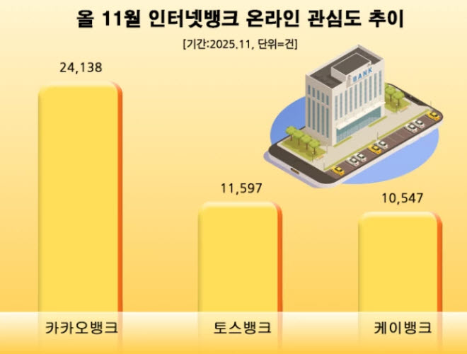 카카오뱅크, 11월 인터넷뱅크 관심도 ‘압도적 1위‘