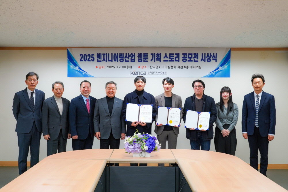 한국엔지니어링협회(회장 이해경)는 지난 30일 ‘2025 엔지니어링산업 웹툰 기획 스토리 공모전’ 시상식을 개최하고 수상작 4편을 선정했다. 엔지니어링산업에 대한 대중적 관심을 높이고 긍정적 이미지를 확산하기 위해 마련된 이번 공모전에는 총 101편의 기획안이 접수되었으며, 총 상금 1,500만 원이 수여됐다. 최우수상은 조선 시대 국책 사업을 현대적 프로젝트 관리(PM) 관점에서 재해석한 기획안이 차지하며, 역사적 사건과 현대 엔지니어링의 체계적인 설계 공법 결합으로 높은 평가를 받았다. 원자력 발전소 엔지니어의 윤리 의식을 다룬 드라마가 우수상을 받았고, 퓨전 서사물과 블랙 코미디 장르 작품이 장려상에 이름을 올렸다. 협회는 발굴된 아이디어를 바탕으로 산업의 중요성을 지속적으로 알릴 방침이다.