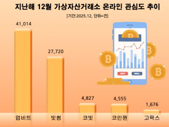 업비트, 12월 가상자산거래소 관심도 1위…빗썸·코빗 순